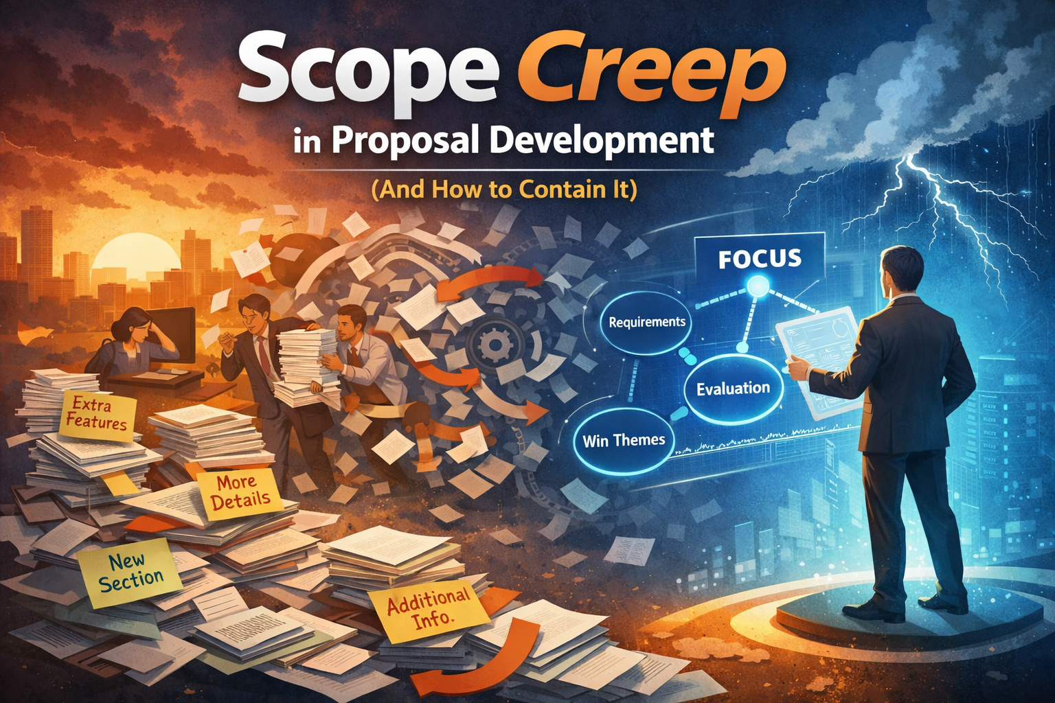 Scope creep in proposal development rarely looks like a problem at first. It appears as helpfulness. A writer adds a paragraph to clarify an assumption. A subject matter expert expands a section to explain a capability in more depth. A reviewer asks for an additional example “just to be safe.” None of these actions feel risky in isolation, and most are driven by good intentions. Yet over time, these small expansions accumulate into a proposal that is noticeably larger, denser, and harder to control than originally planned. Unlike schedule slips or compliance gaps, scope creep is difficult to detect because it does not present as an obvious failure. The proposal still contains strong content. It still references requirements. It may even look more impressive at a glance. The danger lies in what gets lost as content grows: focus. Strong proposals succeed because they tell a disciplined story about why a specific solution best satisfies a specific set of needs. As scope expands, that story becomes diluted. The proposal starts responding to imagined expectations rather than actual ones, and the narrative center of gravity slowly drifts. This drift creates a subtle but powerful form of risk. Teams spend more time managing volume than sharpening arguments. Reviewers struggle to identify what is essential versus what is merely present. Proposal managers sense that the document is bloated but lack a clear basis for cutting content. By the time the problem is acknowledged, scope creep is deeply embedded, and reversing it feels more dangerous than leaving it in place.
