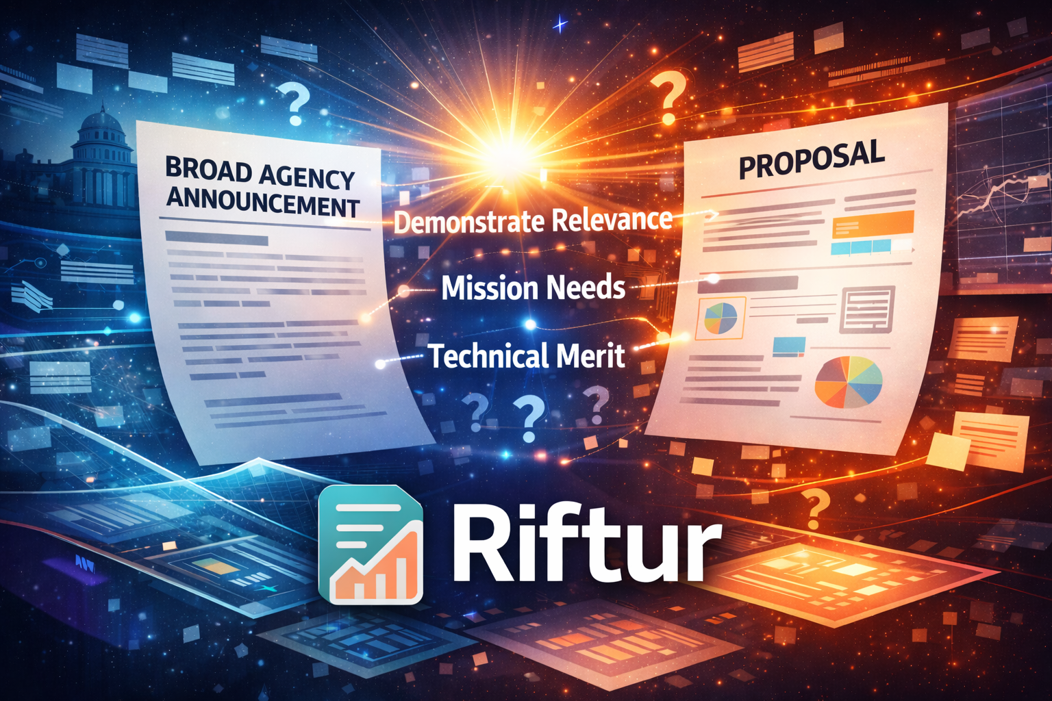 Responding to Broad Agency Announcements will always involve interpretation. What changes is how systematically that interpretation is evaluated and refined. Riftur turns alignment from an informal judgment into a repeatable process. Teams gain clarity on where proposals are strong and where assumptions may be unsupported. This reduces last-minute rewrites and lowers stress near submission deadlines. Proposal development becomes more predictable without becoming rigid. Over time, that consistency compounds across submissions. Teams spend less effort rediscovering how to interpret loosely written requirements. Reviews become faster and more constructive. Lessons learned are captured in structured outputs rather than tribal knowledge. Confidence increases because alignment is demonstrated, not assumed. Proposal teams shift from reactive fixes to deliberate improvement. In an environment defined by ambiguity, this repeatability becomes a competitive advantage. Organizations can respond to BAAs with greater confidence even when requirements remain abstract. Innovation is preserved, but it is backed by clear, defensible alignment. Review cycles become calmer and more intentional. The process supports learning instead of guesswork. Loose requirements stop being a liability and become something teams know how to manage.