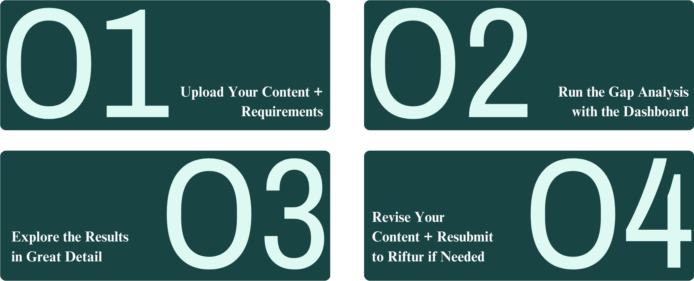 Use Riftur across every stage of proposal development, from early drafts to final submission, to ensure your content fully meets solicitation requirements and closes gaps before evaluation. Compare draft sections against instructions (Section L), evaluation criteria (Section M), compliance matrices, statements of work, and more to surface missing elements and strengthen your proposal. Riftur supports a wide range of government documents, including but not limited to white papers, full proposals, RFP/RFQ responses, solicitations, technical volumes, management volumes, and capability statements.